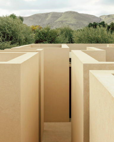 Sur cette parcelle contrainte, la maison occupe toute la surface constructible. Pourtant, loin d’apparaître massive, elle se dévoile progressivement, comme un enchaînement de séquences architecturales. De hauts murs continus rythment le plan et guident le visiteur à travers une série de patios et de passages, entre ombre et lumière. Ce dispositif dessine un véritable labyrinthe domestique, où chaque détour révèle une nouvelle ambiance.