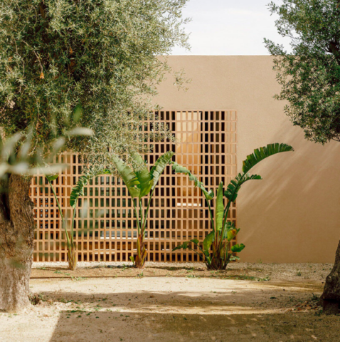 La force du projet tient dans sa simplicité matérielle. Les murs enduits de crépi texturé aux tons terre, les sols en béton chaud, les terrasses en pierre de Noto posée à sec et la piscine habillée de pierre de lave composent une palette sobre, en parfaite résonance avec le paysage sicilien. La végétation locale composée d’oliviers, d’agaves et d’herbes sèches, s’immisce entre les volumes, adoucissant la géométrie et renforçant l’idée d’un refuge presque archaïque.