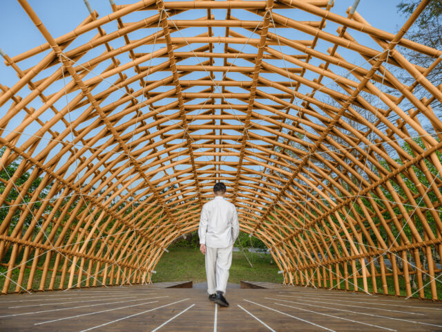 Avec le Bamboo Theatre, installé dans le parc Shima à Xiaobantian, dans le comté de Nantou, Cheng Tsung FENG entreprend de réinventer ce symbole culturel menacé. Il le fait à travers le prisme de la scénographie contemporaine, en mêlant des matériaux d’hier et d’aujourd’hui, comme le bambou, le bois, le métal, la corde et le ruban adhésif qui sont des éléments familiers au monde du théâtre.