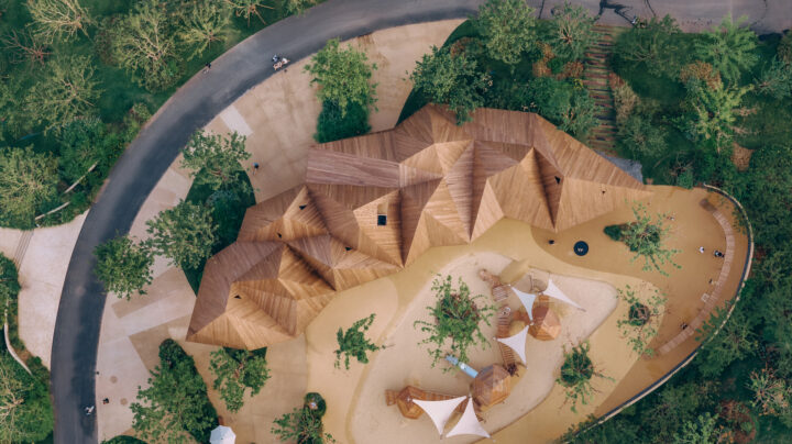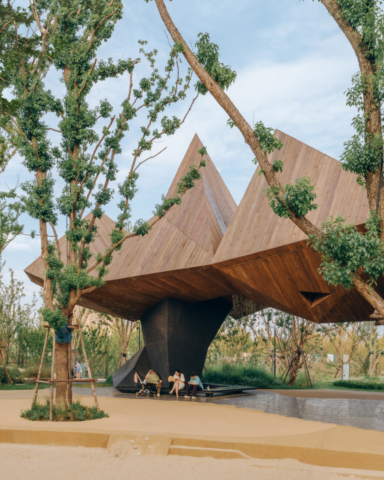 Sur l’île en développement de LuxeIsland, à Wuhan, le studio DL Atelier signe un projet singulier : The Brave Cabin, un petit restaurant-pavillon en bois qui marque l’entrée du site. Visible depuis la rive opposée, il agit comme un repère architectural fort, presque comme une sculpture au milieu du paysage.